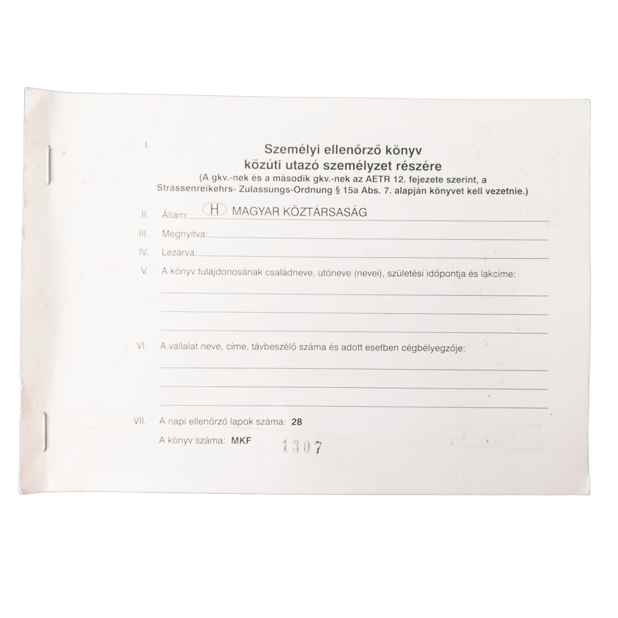 - Το έντυπο προσωπικού ελέγχου είναι σχεδιασμένο για οδηγούς που απασχολούνται στη μεταφορά εμπορευμάτων ή επιβατών με οχήματα εξοπλισμένα με αναλογικό ταχογράφο.
