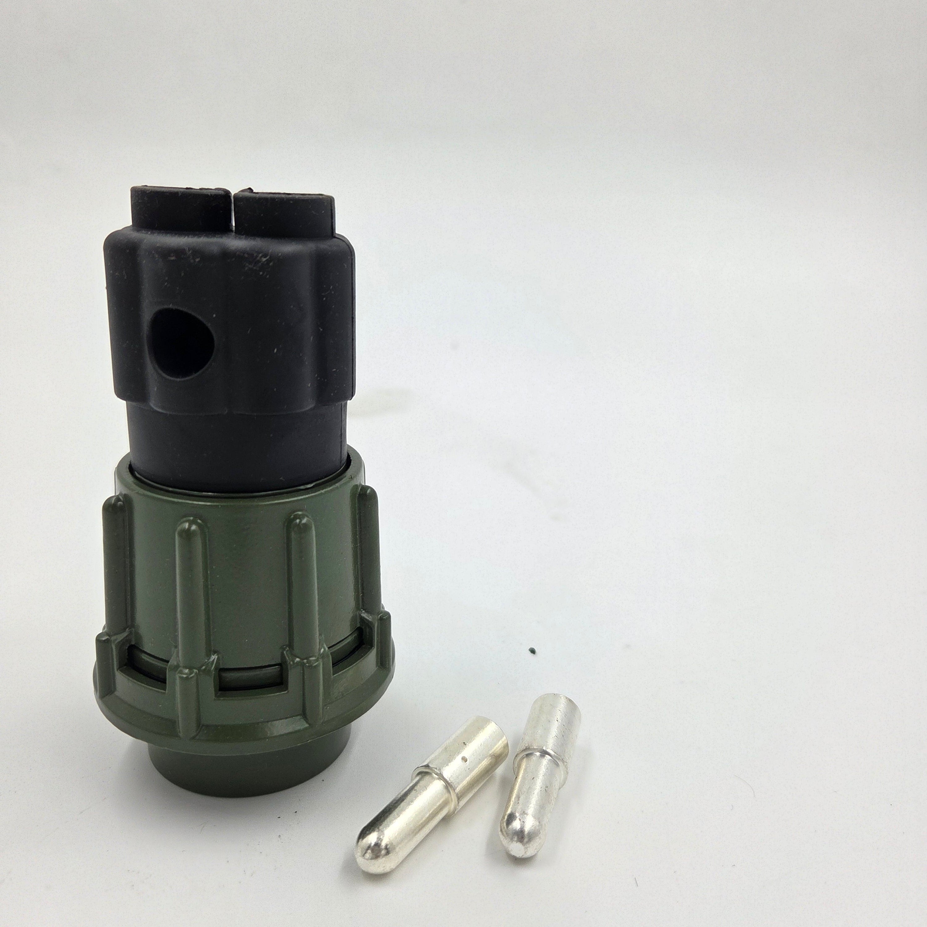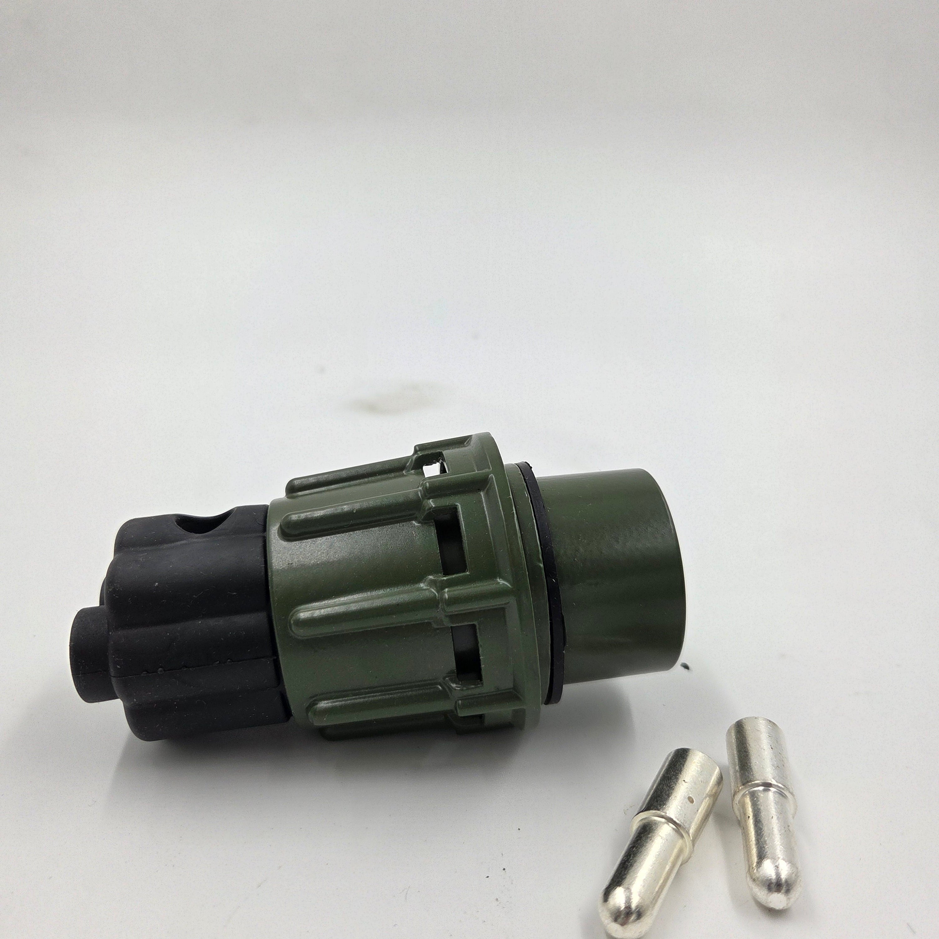 La spina elettrica a 2 poli NATO 24V è progettata per connessioni affidabili in sistemi a 24 volt, tipicamente utilizzata in ambito veicolare o industriale. Grazie al suo design robusto, è ideale per applicazioni che richiedono una connessione sicura e stabile tra dispositivi elettrici.