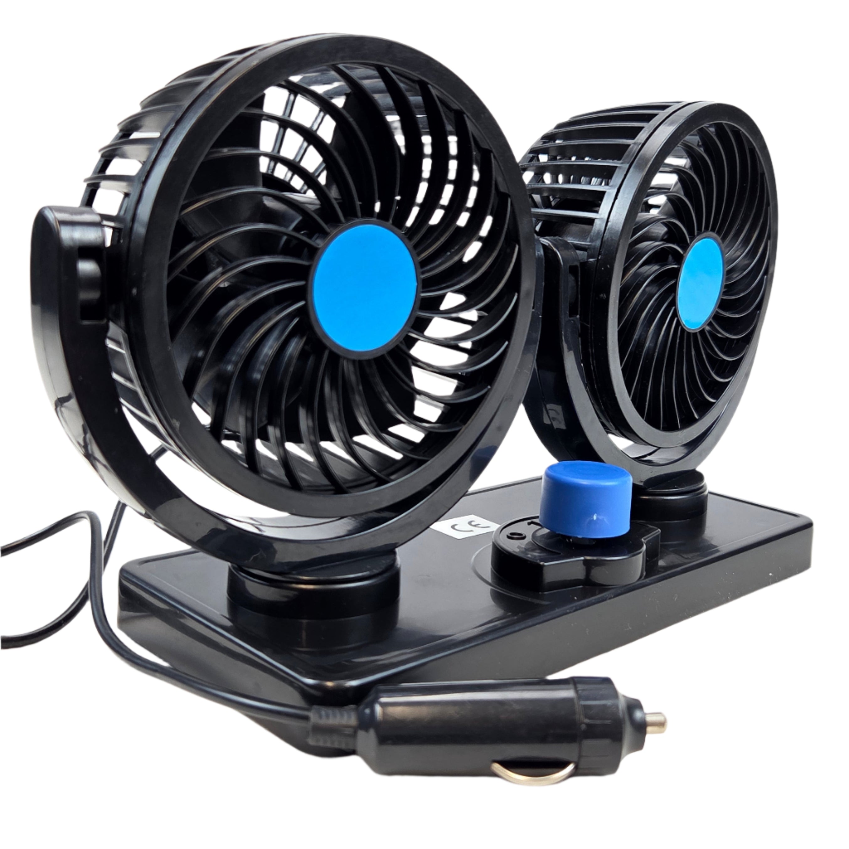 Beat the summer heat with this powerful Double Head Car Fan. Designed for maximum comfort, it features two independently adjustable fan heads that can cool both the driver and passenger at the same time. The heads rotate 360° both horizontally and vertically, so you can direct the airflow exactly where you need it.